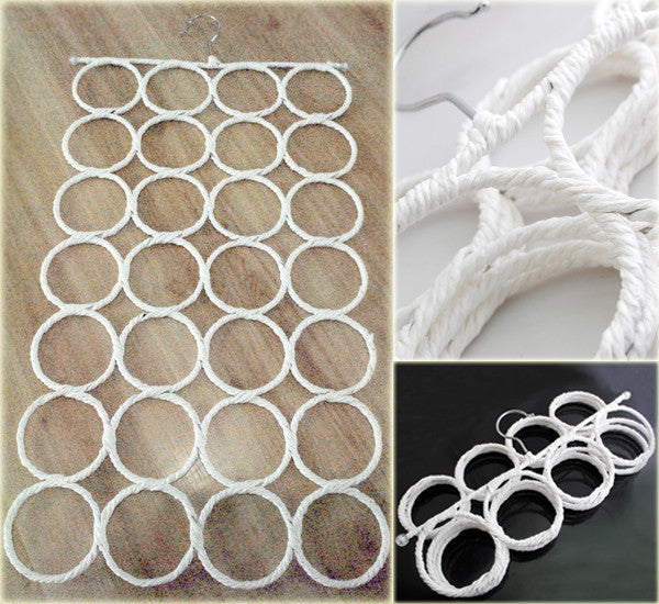 This crochet look organiser comes with 28 detachable circles so you can create different shapes to fit your home and your scarf or necktie collection! If you want to display your ties and scarves so you can see and wear them, this is the organiser for you.
